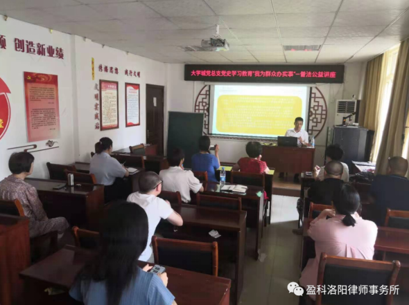 为进一步落实“我为群众办实事”要求,践行司法为民宗旨,满足居民群众的法律需求,秉持着“无公益,不盈科”的理念,2021年6月2日下午,北京盈科(洛阳)律师事务所刑事法律事务部主任魏俊卿为大学城社区居民开展公益普法讲座及免费法律咨询服务,刑事部成员吕晓孟律师、郭莉律师、邢怡明律师均到场参加。