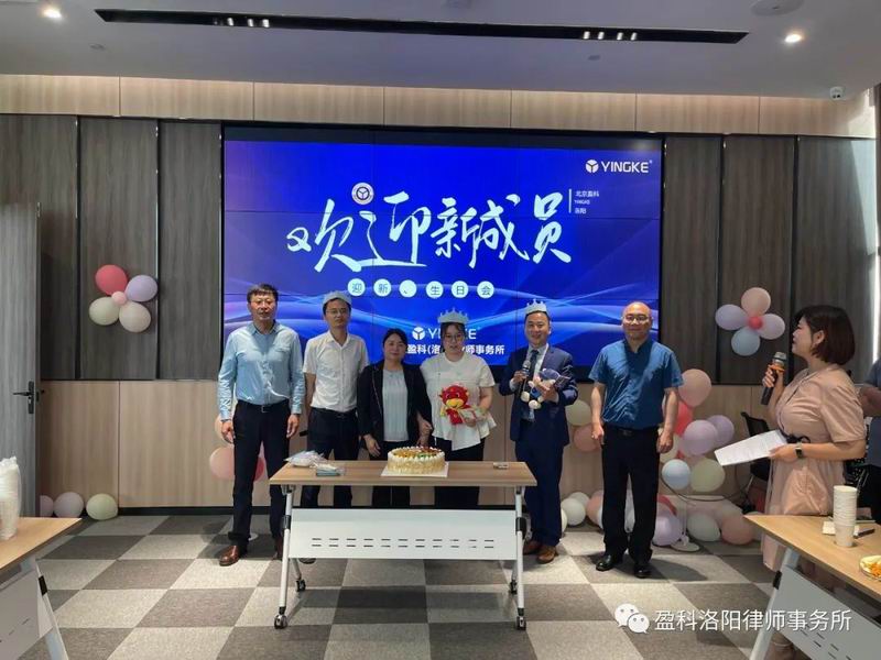 2021年6月3日下午,北京盈科(洛阳)律师事务所在会展国际16楼多媒体会议室举办了6月份的迎新、生日会活动,隆重欢迎新加盟的律师、实习律师以及行政人员,同时为6月份过生日的同事庆生,献上律所全体人员最真挚的祝福。